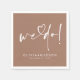 Beautiful minimalist wedding napkins "We Do!" designed in light brown (mocha mousse colour) for a modern and luxurious touch to your table décor. The elegant heart typography title pairs perfectly with the romantic clean text, creating an unforgettable ambiance for this special day. Personalise the text and background colours to match your wedding palette, adding a unique and stylish flair to your celebration.