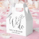 This black and white minimalist elegant script wedding favour box can be personalised with your information in chic typography. Designed by Thisisnotme©