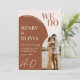 This wedding invitation features the bold "We Do" text nestled within a modern design with a large terracotta arch. The text is clear and easy to read, and there's plenty of space for you to personalise the invitation with your own details. including two photos! Showcase your love story with a unique arch-shaped photo on the front and a photo on the back. This clean and modern design is perfect for couples who are looking for a unique way to invite their guests to their special day.