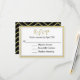 This simple and elegant wedding RSVP response card is designed with a calligraphy font in the "RSVP" heading and bordered with gold and black edging for a clean modern appeal. The reverse side of the response card features a modern black and gold chevron pattern. This response card is a part of the "We Do Modern Chic Wedding Collection" and is ready to personalise with your wedding details. Simply select the "Customise It" button and input your details in the template on the right. You may change fonts, font colours, and sizes as well as rearrange the text layout to suit your needs and preferences.