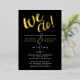 Celebrate your love with our modern elegant wedding invitation, designed to capture the essence of contemporary elegance. Featuring a striking, hand-written "We Do" in bold gold foil script against a chic black background, this invitation radiates sophistication and charm. Accented with touches of gold foil and crisp white, it has a stylish and clean, minimalist aesthetic.