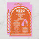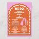 Our minimal, bold retro style wedding order of service program is perfect for the trendy couple who loves standing out and making a bold statement. Our design features a bold bright pink-orange colour combo. Simple abstract wavy arch and circle shapes create a bold look with "We Do." displayed boldly in white large font. The reverse side features a simple modern design with a bold monogram and an optional couple's wedding website address