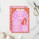 Our minimal, bold retro style wedding order of service program is perfect for the trendy couple who loves standing out and making a bold statement. Our design features a bold bright pink-orange colour combo. Simple abstract boho arch and circle shapes create a bold look with "We Do." displayed boldly in white large font. The reverse side features a simple modern design with a bold monogram and an optional couple's wedding website address