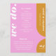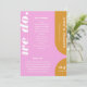 Our minimal, bold retro style wedding order of service program is perfect for the trendy couple who loves standing out and making a bold statement. Our design features a bold bright pink & yellow colour combo. Simple abstract arch and circle shapes create a bold look with "We Do." displayed boldly in white large font. The reverse side features a simple modern design with a bold monogram and an optional couple's wedding website address. Designed by Moodthology Papery