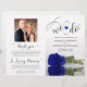 This beautiful wedding program is both modern and elegant. The DIY folded design features modern script lettering on the front reading "we do" with the names of the couple and wedding date/location. There is a photo of a beautiful long-stemmed royal blue or cobalt coloured rose reflecting in a pool of water with waves and ripples. The inside has the same flower as a watermark background with space for the ceremony and bridal party details. The back has your photo, along with space for a customisable thank you note, and a memorial note to recognise lost loved ones. Sophisticated, stylish, and chic, these programs will add class and style to your wedding celebration.