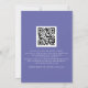 Script We Do Blue QR Code Wedding Add your QR code to your wedding website on the back makes this a convenient option for your guests to RSVP and see all the details without the need for separate RSVP and details cards. A simple yet elegant design on a background of periwinkle blue violet. Stylish set script We Do takes centre stage at the top.The rest of the text you can easily personalise. Text and background colours can be changed if you wish to better suit your wedding theme via the customise further option.