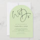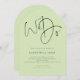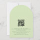 We Do Script QR Code Lime Cream Green Wedding Arch Shape. A simple yet elegant typography design. Stylish set script We Do takes centre stage at the top.The rest of the text you can easily personalise. Text and background colours can be changed if you wish to better suit your wedding theme via the customise further option. A QR code is on the back for the convenience of your guests to reply online via your website. Your QR code will automatically be generated to replace the sample code when you ente your website URL into the template.