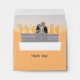The peachy orange envelope fits the RSVP card of the We Do, summer wedding suite. The inside flap shows the wedding stationery theme We Do, carved out of the overlay of the sunset photo.