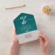 "We do" elegant teal blue and white cursive script handwritten style calligraphy wedding all in one invitation.