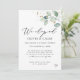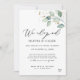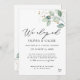 We eloped announcement to surprise friends and family with the news of your marriage and informing them of your reception details to come. Just married announcement features "we eloped" in a fun script and a greenery branch of eucalyptus with gold elements.