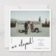 Send a cute, instant photo design for your wedding announcements with this typography, modern note. With black handwriting. Available with "we eloped," "just married," "we're married," and "we got married" typography text.