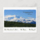 This postcard announcement features a clear photograph of Mt. McKinley in Alaska, also called Denali, with a lightly feathered, cut-out edge. The photo has forest green texts with a popular quote from John Muir 'The mountains are calling and I must go.' Since nature lovers know how strong the call from the mountains is, as many decide to get married while under the spell of some of the most beautiful mountains in the world. Below the mountain is easy to customise texts that reads 'The mountains called... We went... We Eloped!'. On the back is a template so it's easy to announce the marriage of the proud couple.