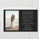 On the back, you have one vertical photo on on side and marriage details text paragraph on the other side.