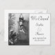 A postcard with an announcement that the couple have eloped to be wed. A vintage themed card where a girl jumps out of a window into the arms of her future husband ready to catch her at the front door of her father's house. An appropriate card for those couples where eloping is the only option available or where the couple have, for various reasons, chosen this approach over a more traditional wedding ceremony. Fully personalise the card to announce the Bride and Groom's name, and date of wedding (which may be in the recent past if the ceremony took place while the postcard was in the mail). Additional information such as expression of thanks, explanations etc, can be added on the back of the postcard.