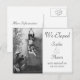 A postcard with an announcement that the couple have eloped to be wed. A vintage themed card where a girl jumps out of a window into the arms of her future husband ready to catch her at the front door of her father's house. An appropriate card for those couples where eloping is the only option available or where the couple have, for various reasons, chosen this approach over a more traditional wedding ceremony. Fully personalise the card to announce the Bride and Groom's name, and date of wedding (which may be in the recent past if the ceremony took place while the postcard was in the mail). Additional information such as expression of thanks, explanations etc, can be added on the back of the postcard.