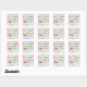 The design includes a cute coffee illustration paired with bold rainbow stripe borders, creating a vibrant and modern look that works beautifully on takeaway cups, packaging, bags, and small promotional gifts. A custom message area allows you to personalise each design for your audience or occasion.