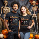 This design has as main figures some skulls of partying witches, with musical instruments and a bottle of rum with a funny sign "Halloween" "We're going to party". This shirt can be personalized, that is to say that it has the possibility that the client can change the signs to his liking. It belongs to the "Dark Shadows" collection.