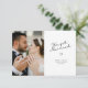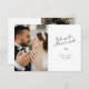 elegant we got married wedding announcement design with lovely black lettering. The bride and groom's image and back colour and text can be personalised.