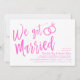 After the big wedding day and the rings are exchanged invite your most honoured guests to a post-wedding brunch. This invitation features the words "We Got Married" in fancy script letters. Towards the side of this are a pair of wedding rings. Underneath this graphic is a space for your own words and information for your post-wedding event.