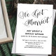 This simple, elegant card was designed to invite your friends and family to your wedding reception or party to be held at a date after you've married. Using a swirling modern script font, I've created a typography graphic overlay that reads "We Got Married". This image was paired with an all-caps sans-serif font for depicting your personal details. Use the provided template fields to update the design. If you'd like to customise further, moving any details elsewhere, changing the fonts or sizes, just click the provided link and edit the design as you wish. I added all layers separately and they are unlocked to give you full design control.