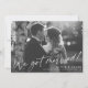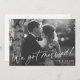 This modern yet elegant wedding elopement announcement features a script greeting that says "We got married!", classic typography, and a "full-bleed" horizontal photo. All colours in this design are customisable, even the script. You can further customise this design by adding another photo and/or additional text to the back side.