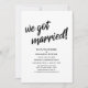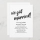 Invite your guests to your wedding celebration with the help of this simple black on white invitation card. In the design I've used a bold, casual, modern script font to create a graphic typography overlay reading "we got married!". Fill in the template blanks with your details to personalise the design. All layers were left unlocked so you can also click to further customise and re-position text or even change sizes or fonts. The background colour was left white but this, too, is editable; change it to one of your wedding colours if you prefer. //