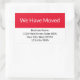 We Have Moved Business Announcement Red and White Rectangular Sticker