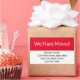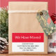 This bright red and white moving announcement as two fields. The red field says 'We have moved'. Use the white field to customise your window decal with your company's name, address, and phone number.