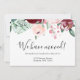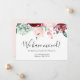 'We have moved', elegant watercolour burgundy and pink floral announcement flat card. Let your friends and family know you have finally completed on your purchase and where they can find you. The card can be customised with the inclusion of your family name and new address. The back of the card bears the message 'we hope to see you soon' and you are welcome to keep the design text as-is, edit or delete. A new home equals new beginnings and new memories!