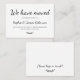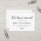 Simple Minimal „We've Moved” Calligraphy Script New Home Moving Announcement insert enclosure card. Let your friends and family know your new address using these minimalist card elegant pretty hand lettered font script typography (or calligraphy) „We Have Moved” text on front and the back side „Please keep in touch!” text in black and white. Easy to customise with your own details.