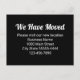 This moving announcement postcard has a white text you can customise. This black postcard currently says We Have Moved Please Visit Our New Location. Additional lines of text are available for your business name, new address, and phone number.