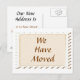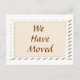 Let your friends and family know you have moved with this postcard. Done in a postage stamp theme on the front and simple text on the back. Update with your new information.