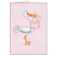 This adorable stork delivering twin girls is on a soft pink cloud like background.