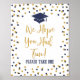 WE HOPE YOU HAD FUN - PLEASE TAKE ONE graduation party sign features a navy and gold glitter confetti design.