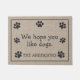 This funny pet dog doormat design features the words "We hope you like dogs". Personalise this cute rustic faux burlap country door mat with your family name and custom greeting. The perfect unique modern housewarming or new homeowners gift.