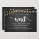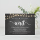 We just couldn't wait, Wedding Elopement Announcement / Invitation card, in Rustic farm chalkboard, String Lights design. This is perfect for your wedding reception and post-wedding celebration party. Add your details in matching font / lettering.