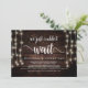 We just couldn't wait, Wedding Elopement Announcement / Invitation card, in Rustic farm Wood, String Lights design. This is perfect for your wedding reception and post-wedding celebration party. Add your details in matching font / lettering.