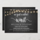 We just couldn't wait, Wedding Elopement Announcement / Invitation card, in Rustic farm chalkboard, String Lights design. This is perfect for your wedding reception and post-wedding celebration party. Add your details in matching font / lettering.