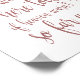 My thoughts on this product was excellent. Well printed in a gloss finishing and just the size l ordered. It arrived in good condition and am overall satisfied with the product. The printing turned out great. I was quite surprised with the finishing touch to the poster. The semi gloss was just right and a perfect size to display at the wedding.