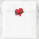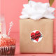 We Love Referrals business message with a red heart. Let employees wear the button to remind customers to refer others, or use the stickers on your products or invoices for networking and marketing materials sent to clients.