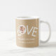 This "We Love You Dad!" Mug is decorated with the word LOVE in white typography on a tan background.