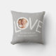 This "We Love You Dad!" Photo Pillow is decorated with the word LOVE in white typography on a grey background. Easily customisable with your photo and name. Perfect as a gift for Dad.