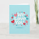 This greeting card features a sky-blue background with the words “We Love You” centered in friendly white letters, gently lifted with soft shadowing for a subtle layered look ❤️. Around the text, hearts in red, pink, and teal float like confetti, creating a cozy, affectionate scene that feels like friends gathering close. Some of the larger hearts have tiny smiling faces, adding a sweet, caring presence as if they’re looking toward the message together 🥰. Smaller hearts, without faces, are sprinkled throughout to guide your eye in a light, drifting pattern. The warm reds and soft pinks contrast nicely with the cool blues and teals, making the center phrase easy to spot at a glance. The text stays in the middle while the hearts frame it from all sides, with a few clustered nearer the corners for balance. Several hearts sit just above and below the lettering, and the smallest ones trail off toward the edges against the calm blue field.