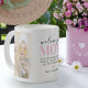 Discover the perfect gift for Mum – a heartwarming keepsake mug that combines artistry and sentiment in a unique, touching way. This coffee mug showcases two cherished family photos and a heartfelt message expressing your deep-seated love and admiration. The words 'We love you mum, you are simply amazing, we just couldn't imagine our life without you' are beautifully incorporated to provide an emotional impact. Accented with a pink heart and your children's names, this gift is a testament to a mother’s unending love and devotion.
