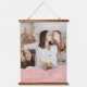 Celebrate mum any day of the year with this heartwarming hanging tapestry. The lower portion of the tapestry has a soft pink torn-paper design with elegant white cursive text that reads, "We Love You Mum." The tapestry is suspended by a wooden frame with a rope for hanging, giving it a rustic and sentimental touch, making it a perfect Mother's Day gift.