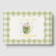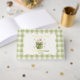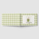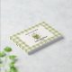 This foil baby shower guest book features a sage green and white gingham border with a watercolor matcha latte illustration in a mason jar. Design includes a large soft green bow tied around the jar and tiny scattered hearts in muted green tones. Shows the playful text "Baby, We Love You So Matcha!" in matching green lettering. The foil accents add a touch of shimmer to make your keepsake extra special. Perfect for guests to write messages and advice for the parents-to-be. Coordinates with the full matching collection.