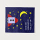This sweet nursery wall hanging features a rocket ship ready to head to the moon, along with the customisable wording "We love you to the moon and back" in a white casual font on a navy blue background. This is perfect for decorating a baby's or child's bedroom. It would also make a great baby shower gift.