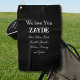 We Love You ZAYDE Gift Jewish Grandpa Gift Personalised Family Names Cute Charcoal Grey Golf Towel. Click Personalise This Template to customise it with the family names quickly and easily. We Love You ZAYDE Gift Jewish Grandpa Kids Names Golf Towel, is part of the Gifts For Grandpa
