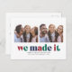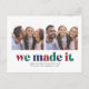 Celebrate making it through another crazy year with this two photo Christmas postcard. It features the words "we made it" in multicolored letters, space for a short message, as well as your name and the year. The back of the postcard also has room for a personal note.