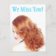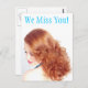We miss you postcard for salons/hairstylists featuring a beautiful redhead.